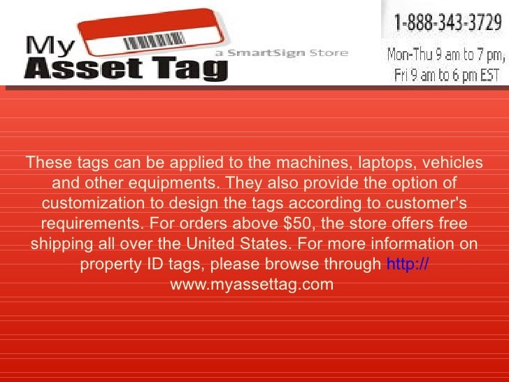 Quick guide to Hardware Asset Tagging | The ITAM Review Foil Asset Tags - Made of 100% aluminium with graphics sealed into an anodized layer create a remarkably durable asset label. These tags will often outlast your assets High Temperature Asset Tags - Used for assets that are in temperature sensitive locations Voiding Asset Tags - Asset tag that destroys itself should it be ripped off.