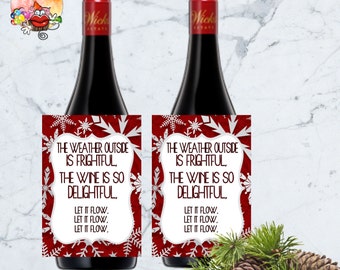 Free Printable Wine Bottle Labels for Christmas - Print This Today Click here to download the PDF of this adorable wine bottle label. Do not resize it and print in actual size. Cut from the line and you will be able to use it on two wine bottles. Click here to download this other set of wine bottle labels. Print it in full size and you'll again get two labels that will perfectly fit wine bottles.