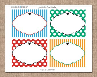 Mickey Mouse Food Labels - Etsy Mickey Mouse Food Labels Template - Printable Birthday Party Theme Decorations - Buffet Tags - Place Card - INSTANT DOWNLOAD - EDITABLE text. SIMONEmadeit. (9,800) $3.50. More colors.