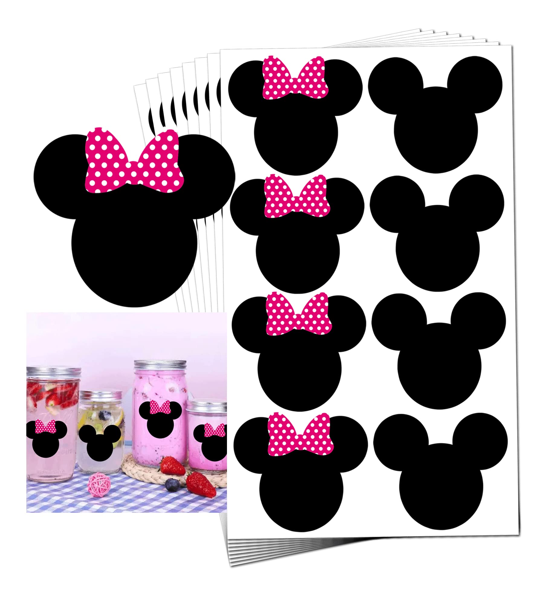 2.38 x 2 Inch Pink Minnie a Mouse Head Stickers Vinyl PVC Mickeys Chalk Chalkboard Labels Children's Birthday Party Decorations Supplies for Minnie a ...